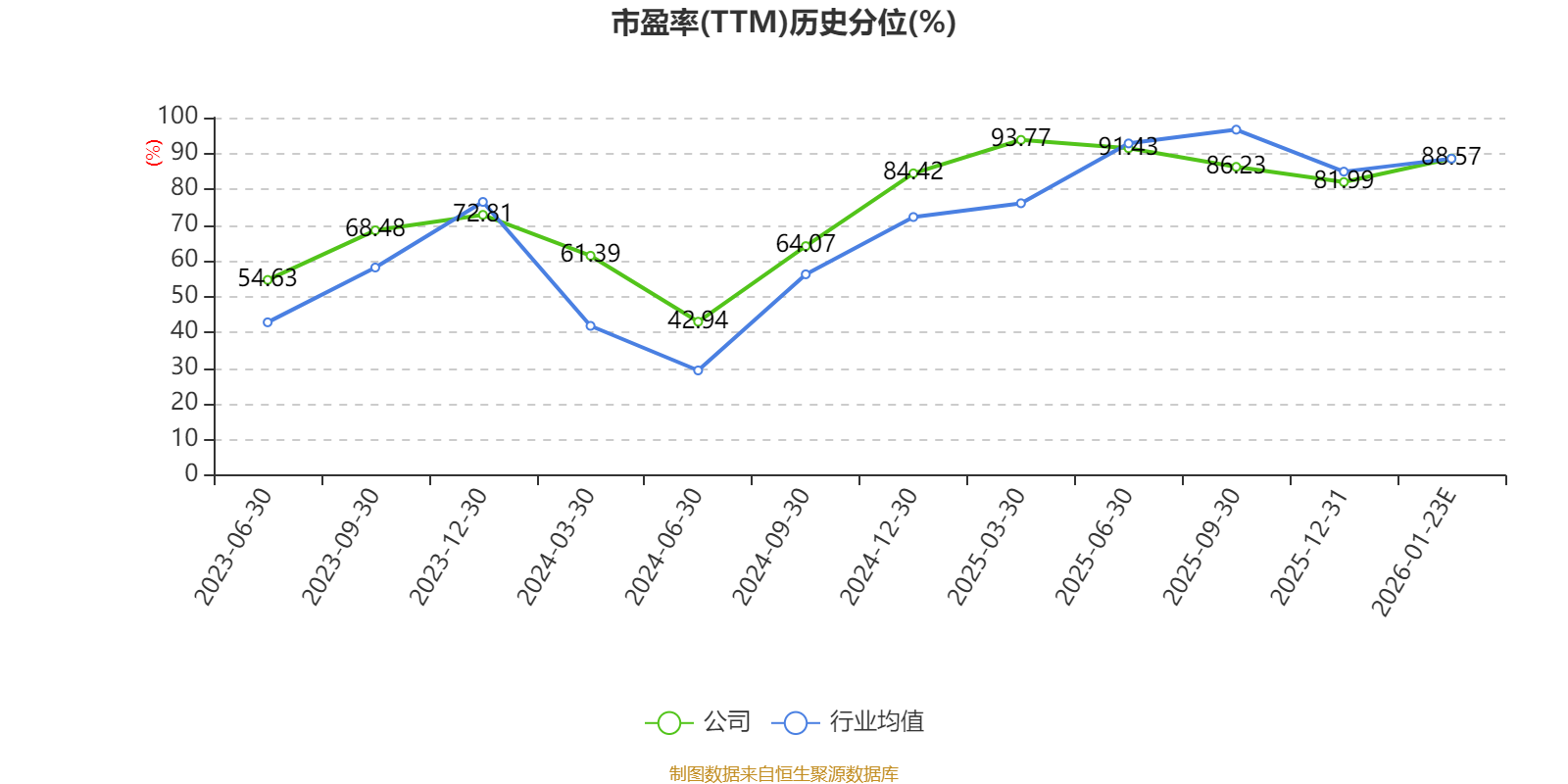 以本次袒露事迹预报均值诡计,公司连年市盈率(TTM)图如下所示: