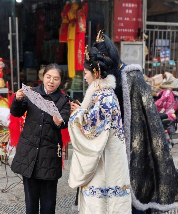 针对节沐日历间景区东谈主流量大、现款使用经常的性格,该即将宣传力量精确投放到要点区域和要点东谈主群。在搭客聚合地,宣传志愿者要点面向景区商户、老年搭客、流动摊贩等现款收付经常群体,以及一稔汉服体验传统文化的年青搭客,开展互异化、精确化宣传。